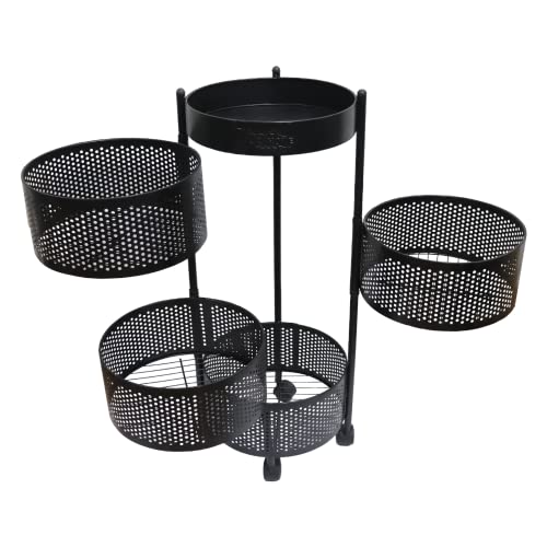 Tiba Home - Metal Trolley Circle Turbo 4 Unit With Wheels -Black-Size:L79*W30cm
