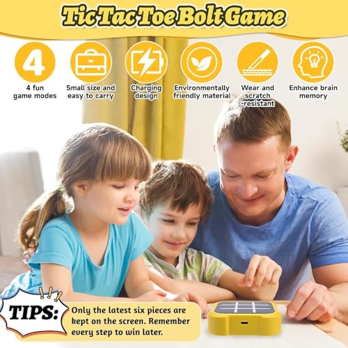 WONDERSPROUT - لعبة تيك تاك تو بولت محمولة باليد 4 في 1، لعبة الكترونية تيك تاك تو للنمو التعليمي والذاكرة، العاب سفر محمولة لركوب السيارة، العاب لوحية للاطفال والكبار