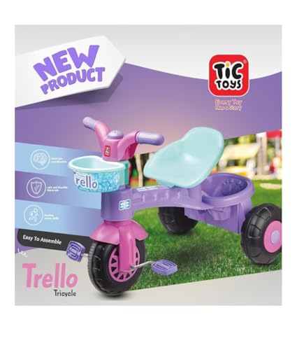 Generic - دراجة تريلو ثلاثية العجلات للأطفال، دراجة دواسة متينة بثلاث عجلات مع سلة تخزين، جرس وإطارات مانعة للانزلاق - للأعمار من 2 إلى 6 سنوات من تيك تويز (أرجواني)