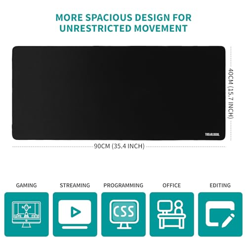 TIDALSOIL - لوحة ماوس ألعاب من المطاط بتصميم مقاوم للماء والانزلاق، بادة ماوس مقاس 900 × 400 ملم لتحسين الدقة، قاعدة ماوس للعمل واللعب والدراسة من تيدالسويل، أسود
