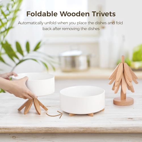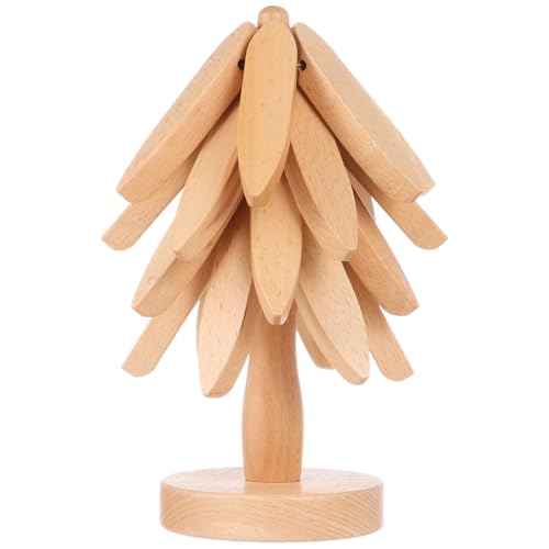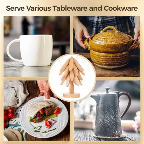 Tideme - حامل خشبي للأطباق الساخنة، مجموعة حوامل قابلة للطي على شكل شجرة للأواني الساخنة والمقالي، حوامل خشبية من خشب الزان لأواني الشاي الساخنة - 4 حوامل خشبية + حامل واحد