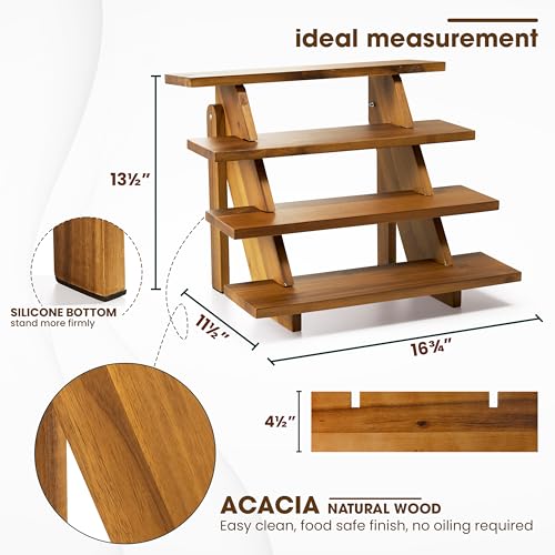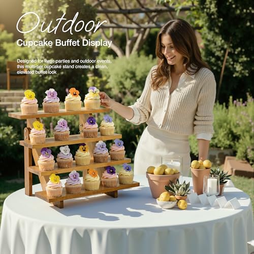 Tidita - Acacia Wood Cupcake Display Stand - 4 Tiered Riser for Vendors Organizer - Wooden Cupcake Cookie Stands for Dessert Decorative Tables - Appetizer Serving Shelves Farmhouse at Party Wedding