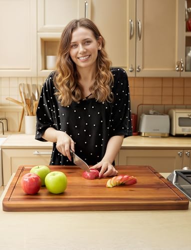 - خشب أكاسيا فاخر: مصنوع من خشب الأكاسيا عالي الجودة، لوح التقطيع هذا متين ويتميز بلمسة نهائية طبيعية وغنية، مما يضمن سطحًا يدوم طويلًا لجميع احتياجات التقطيع والتشريح.