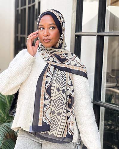 Tie Shop - Tie Shop Women Chi-Chi Chiffon 70 cm x 200 cm Beige - Black BE15CH503300495