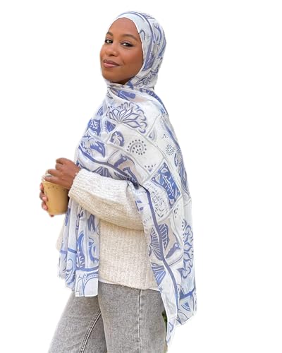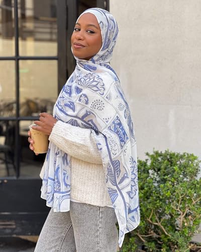 Tie Shop - متجر اربطة عنق شيفون تشي-تشي للنساء 70 سم × 200 سم لون ازرق وابيض WH15CH503300489