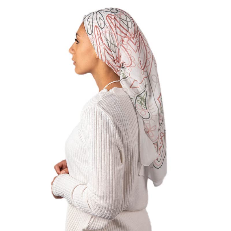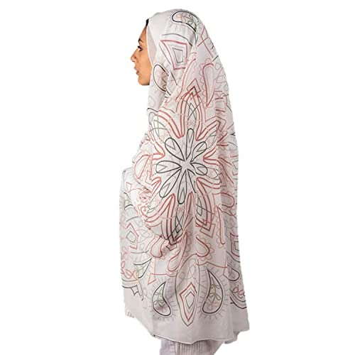 Tie Shop - Tie Shop Women's Digital Crepe Square Scarf, 95x95 - Stylish Printed Hijab, Soft and Breathable Chiffon Crepe, Lightweight Non-Sheer Shawl for Casual Outings and Everyday Wear, Off-White, Pink