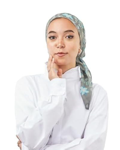 Tie Shop - Tie Shop Women's Digital Crepe Square Scarf, 95x95 - Stylish Printed Hijab, Soft and Breathable Chiffon Crepe, Lightweight Non-Sheer Shawl for Casual Outings and Everyday Wear, Turquoise & Beige