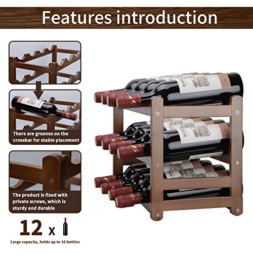 TienYow - Bamboo Wine Rack, 3-Tier 12-Bottle Freestanding Display Wine Organizer Storage Shelf Table Top Countertop tle Cabinet Wine Holder for Kitchen Dining Living Room Bar Pantry Wine Cellar Basement