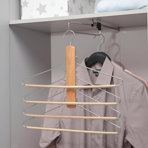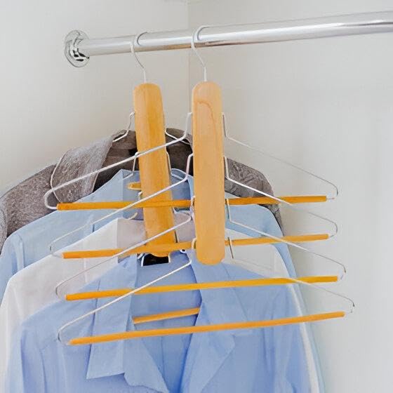 Generic - منظم ملابس متعدد الطبقات، شماعات خشبية متعددة الطبقات لتنظيم الساري والبناطيل والاكسسوارات بشكل منظم في مساحة محدودة من الدولاب، تصميم أنيق ومتين يدوم طويلا
