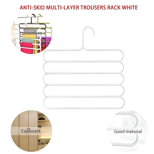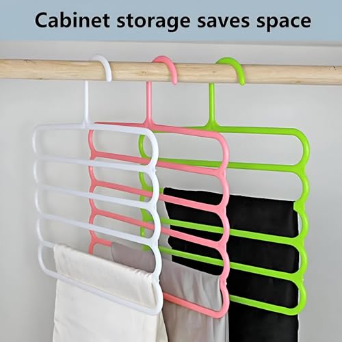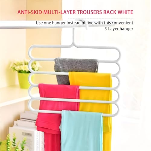 - Maximize your closet space with this multi-functional 5-layer pant hanger, designed to neatly organize trousers and other clothing items, replacing up to five individual hangers with a single, space-saving solution. Its slim profile helps to declutter and organize your wardrobe, creating a more efficient and visually appealing storage system.