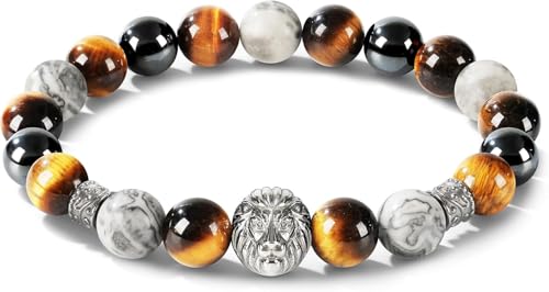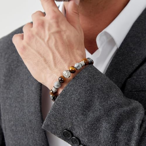 Generic - Tiger Eye Bracelet for Men, 8mm Elastic Adjustable Bead Bracelet, Hematite, Tiger Eye, Map Stone Natural Gemstone Bracelet