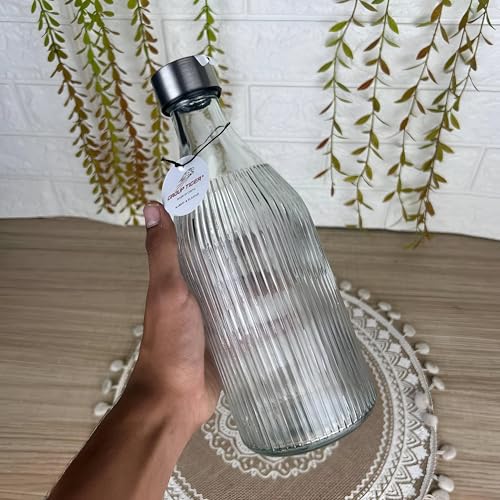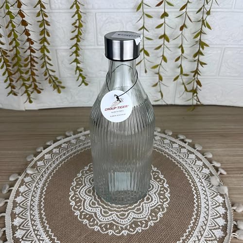 Generic - Tiger Glass Bottle - 1L Decorative Ribbed Container with Metal Clamp Lid, Perfect for Liquids, Eco-Friendly and Elegant Home Storage