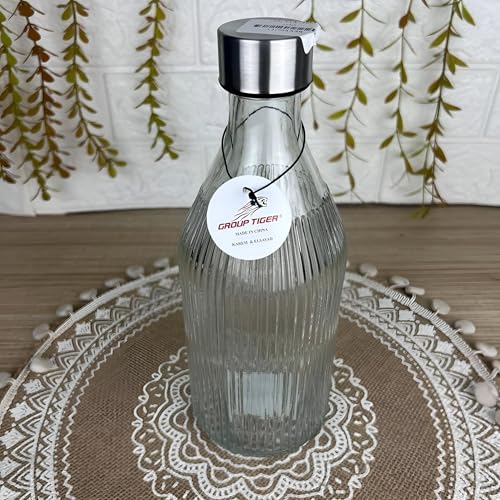 - This elegant glass bottle features a distinctive ribbed texture and pristine clarity, enhancing any kitchen or dining setting with a luxurious aesthetic that turns everyday storage into a decorative statement.