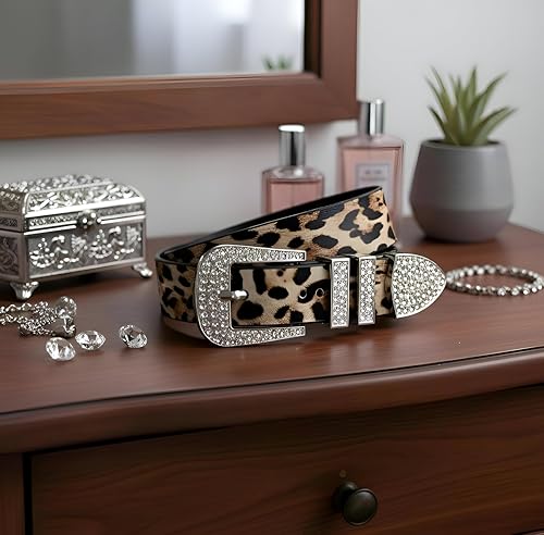 Generic - سوار من جلد النمر، قماش مخملي قابل للتعديل بتفاصيل متوهجة، مصمم للتنوع في الاناقة مع الجينز والفساتين والملابس الكاجوال الرسمية