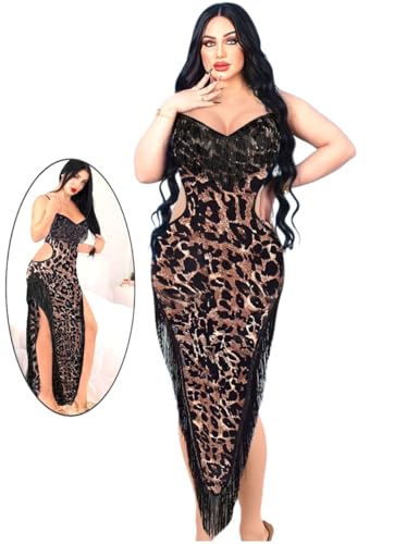 Generic - فستان نوم طويل تايجر قميص نوم، أسود وذهبي، مع شراشيب فري سايز
