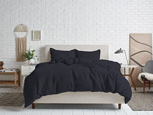 Tigers Trade Lines - طقم لحاف قطن مصري من تايجرز تريد لاين لغرفة المنزل وغرف الشباب، 3 قطع (أسود، 240 × 180 لسرير فردي)، سادة