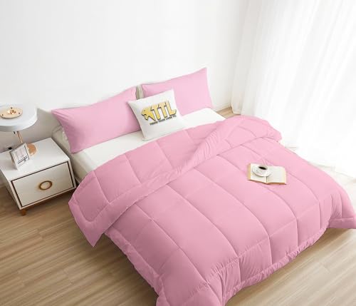 Tigers Trade Lines - طقم لحاف صيفي من تايجرز: مفرش سرير القطن المصري بحشوة الفايبر فائقة النعومة لجميع المواسم للمنزل والفنادق والقرى السياحية لون زهري 2.3 متر × 2.4 لسرير رئيسي تايجرز تريد لاين