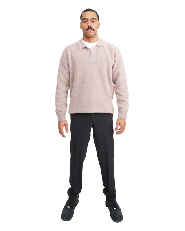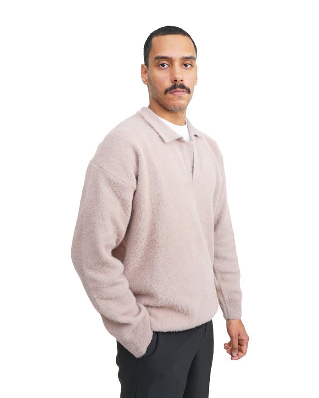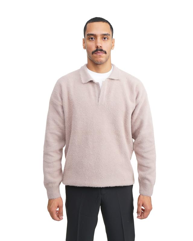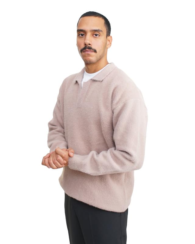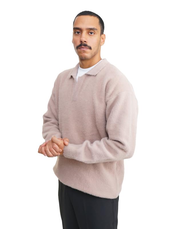 TIGHT STITCH - Tight Stitch 541 Mohair Wool Polo Sweater Soft, Warm & Elegant Winter Knitwear Size L For Man’s,Café