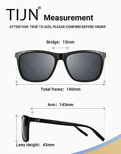 TIJN - TIJN Polarised Sunglasses for Women Men Retro Rectangle Sun Glasses UV Protection for Driving Fishing Cycling Glasses 01-black, M