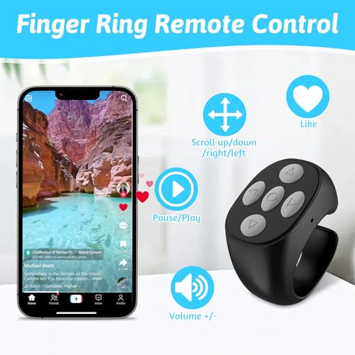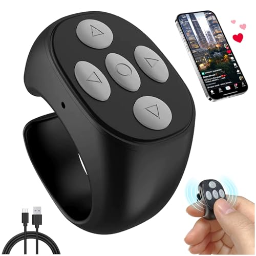 TOGETDREAM - جهاز تحكم عن بُعد لاسلكي يعمل بتقنية البلوتوث مع حلقة تصفح وسكرول على تيك توك، قابل لإعادة الشحن، متوافق مع كاميرات تيك توك وفيديوهات آيفون وأندرويد
