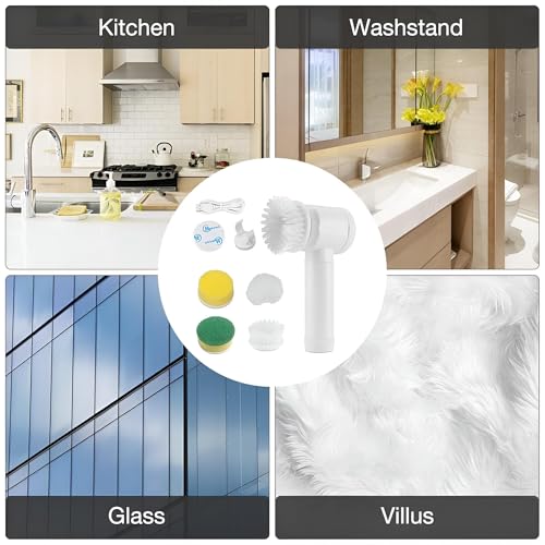Generic - فرشاة تنظيف تايل ميت برو متعددة الوظائف مزودة برؤوس قابلة للتبديل، قابلة لإعادة الشحن، مقاومة للماء، تدور بزاوية 360 درجة للبلاط والجص وكابينة الاستحمام وأسطح المطبخ