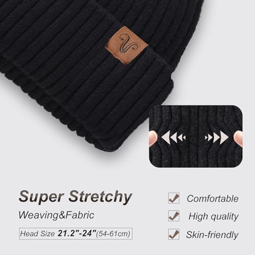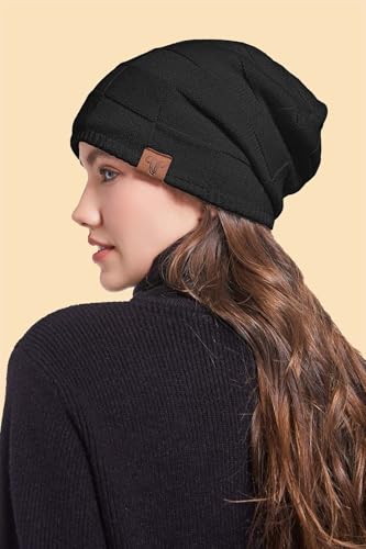 TILUYAMO - Winter Hats for Men Women, Fleece Lined Cuffed Beanie Winter Knit Wool Beanies Warm Chunky Hat
