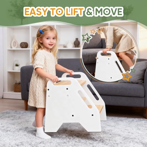 - 3. [Kid-Friendly & Safe Design] Rounded edges, textured steps, and locking hinges make it safe for toddlers to climb and join kitchen or bathroom activities.