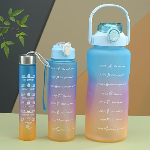 Generic - زجاجة مياه بمؤشر الوقت (ازرق) - زجاجة ترطيب تحفيزية خالية من البيسفينول ايه مع ماصة ومقبض وعلامات للوقت - بلاك هورس