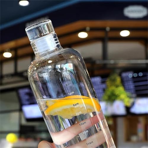 Generic - زجاجة مياه شفافة مطبوعة بمقياس زمني | 500 مل قابلة لإعادة الاستخدام ومضادة للتسرب بغطاء محكم الغلق | تستخدم للرياضة وصالة الألعاب الرياضية واللياقة البدنية (شفاف)