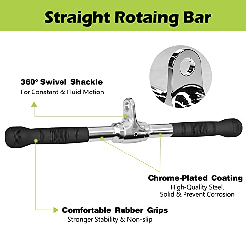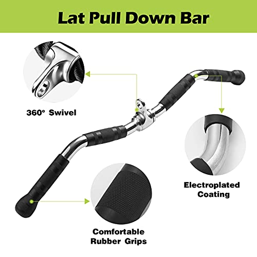 - LAT Pull Down Bar Accessories: Constructed with high-strength, solid stainless steel and friendly textured rubber with polished chrome coating, which is able to attach to any pulley or cable weight machine and ideal for several lat and upper body focused exercises like lat pulldowns, straight arm pulldowns and more, putting up a good performance in sports like rowing. Length of 29.5in