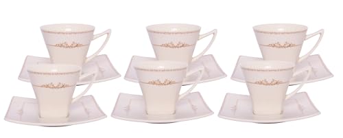 Timeless Porcelain Coffee Cup Set with Saucer of 12 Pieces - White