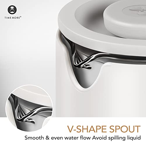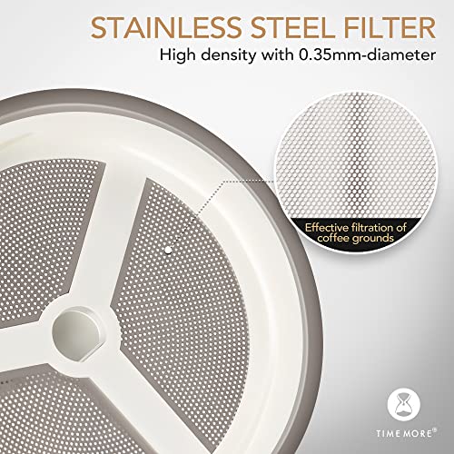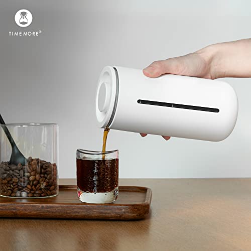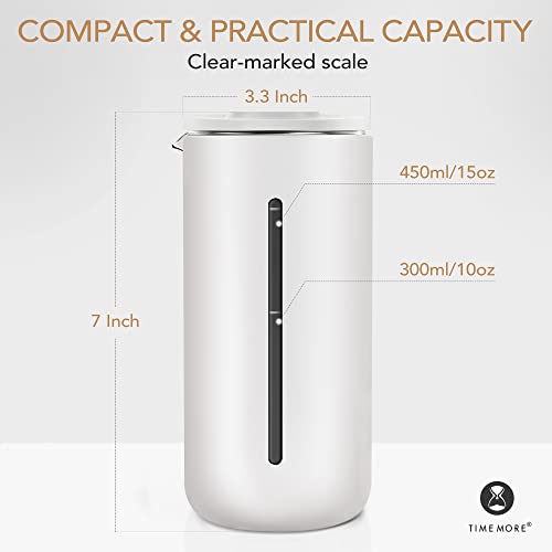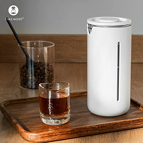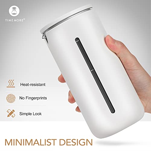 TIMEMORE - ماكينة تحضير القهوة الفرنسية مصنوعة من زجاج البوروسيليكات المقاوم للحرارة مع فلتر من الفولاذ المقاوم للصدأ من تايم مور، ماكينة تحضير القهوة والشاي محمولة للتخييم والمكتب،سعة 450 مل، لون أبيض مطفي