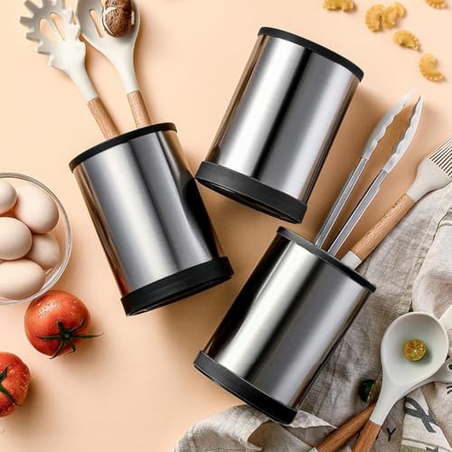 TIMENIL - حامل أدوات مطبخ كبير دوار 360 درجة بأربع حجرات من فولاذ مقاوم للصدأ 17 سم، حامل أدوات طهي، ملعقة وشوكة وسكين لطاولة المطبخ من تيمينيل