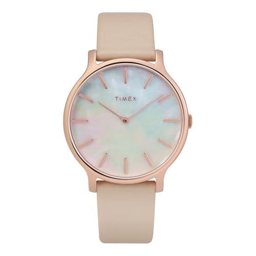 Timex - ساعة للنساء من تايمكس، بنظام حركة كوارتز شاشة أنالوج، سوار جلد بلون وردي، TW2T35300