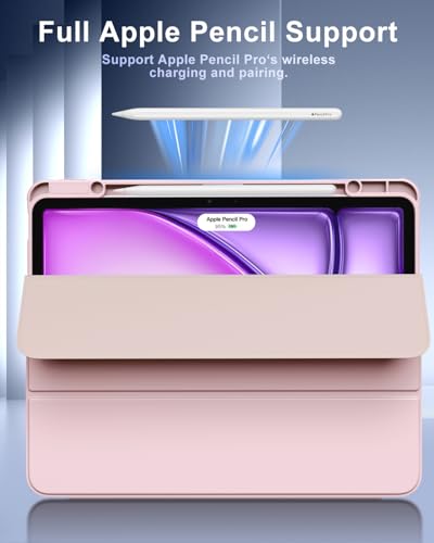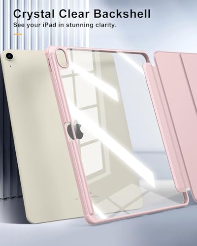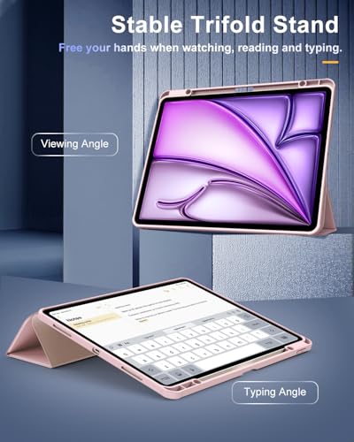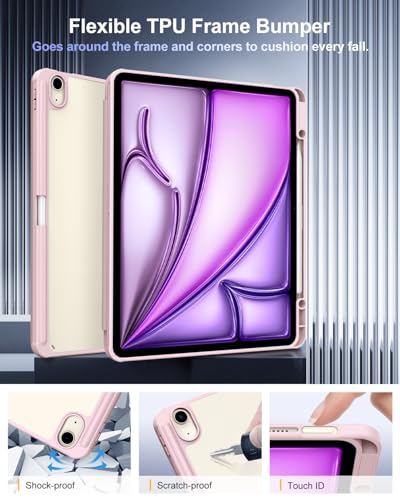 TiMOVO - جراب حماية لجهاز اي باد اير الجديد 13 بوصة (M2) 2024 مع حامل قلم بتصميم واقي رفيع مع غطاء خلفي شفاف بخاصية التنبيه/السكون التلقائي من تيموفو، وردي فاتح