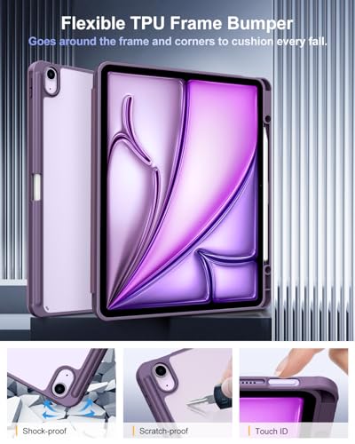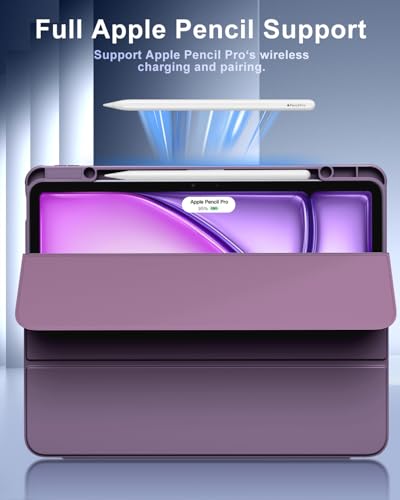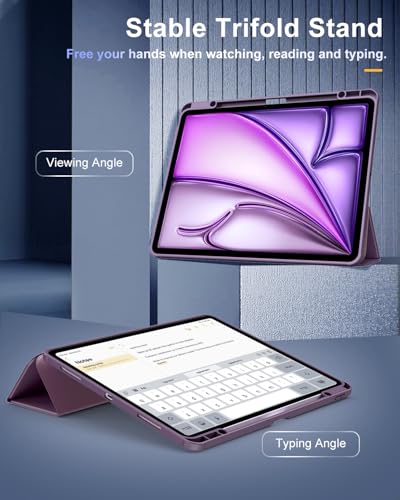 TiMOVO - TiMOVO Case for New iPad Air 13 Inch (M3/M2-2025/2024), Protective Case with Pencil Holder, Slim Stand Protective Case with Clear Transparent Back for iPad Air 13, Auto Sleep/Wake, Purple Black