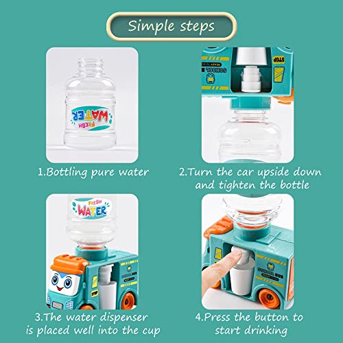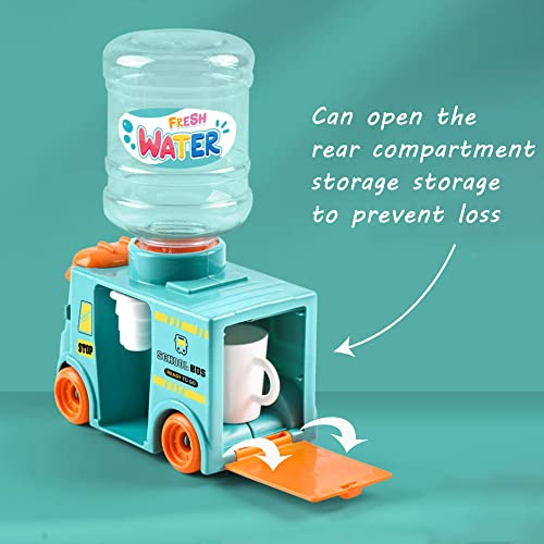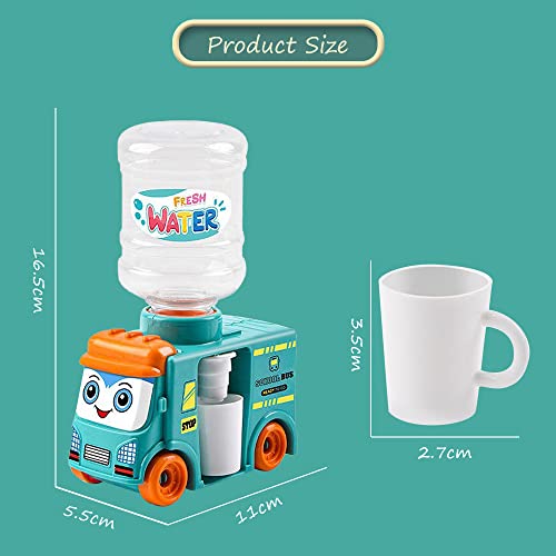 - 💧Mini Water Dispenser💧 - Mini water dispenser is made of safe and environmentally friendly ABS material. Size: 4.3 X 2.2 X 6.5 in; Designed to imitate the city car school bus with attractive colors smile face closer to life. It can improve childrens self- care skills, imagination and creativity.