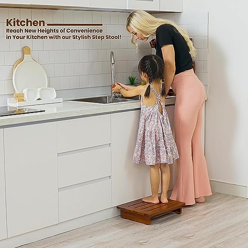 - Crafted from Durable Acacia Wood: Constructed from sturdy Acacia wood, this step stool enhances both strength and durability, while also adding a touch of natural beauty to your living space. The inclusion of a handle provides an added layer of support, making it an excellent choice.
