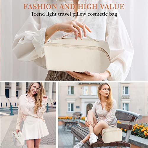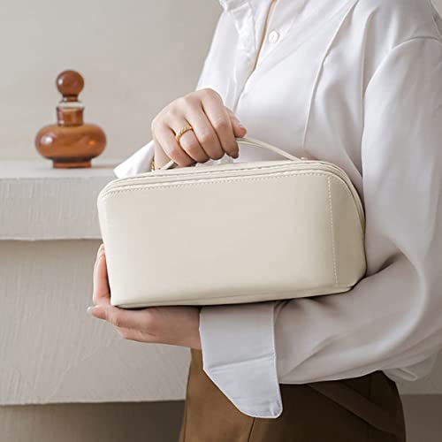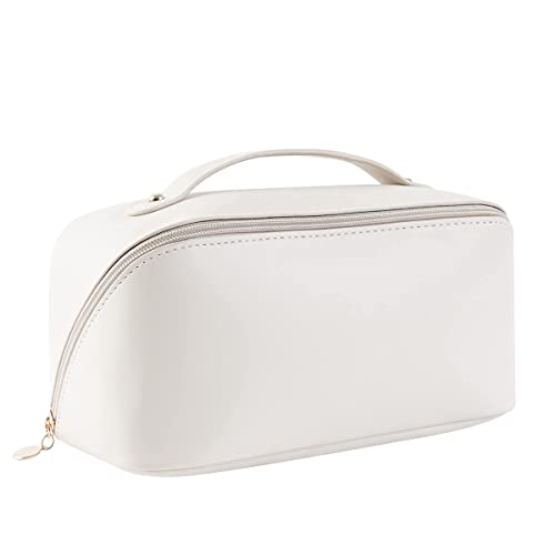 - شنطة ادوات الزينة للسفر بسعة كبيرة (ابيض كريمي).