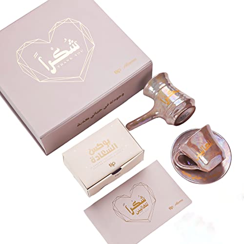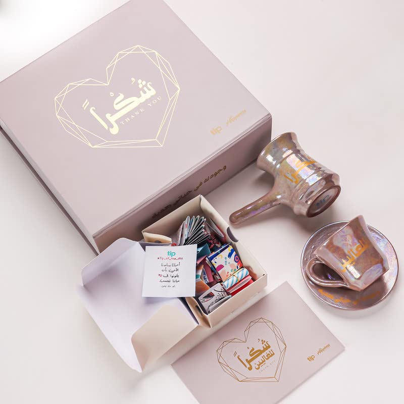 Tip Of The Day - Tip Of The Day | Shukran Warm Beige |Coffee Gift Set | Coffee Pot | Coffee Cups | Made Of Pottery | The Happiness Box Contains 36 Tip Of The Day messages | Eid Gift | Color Beige