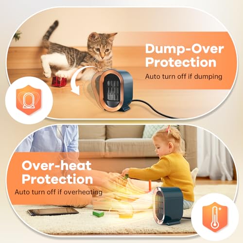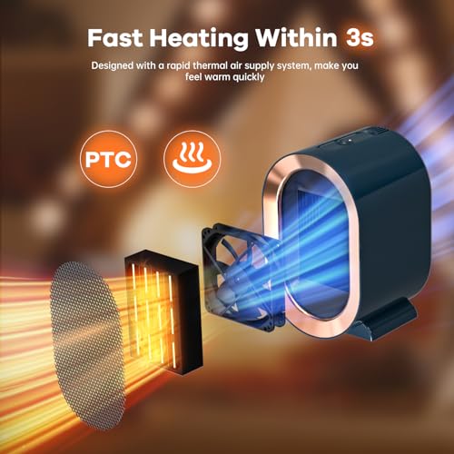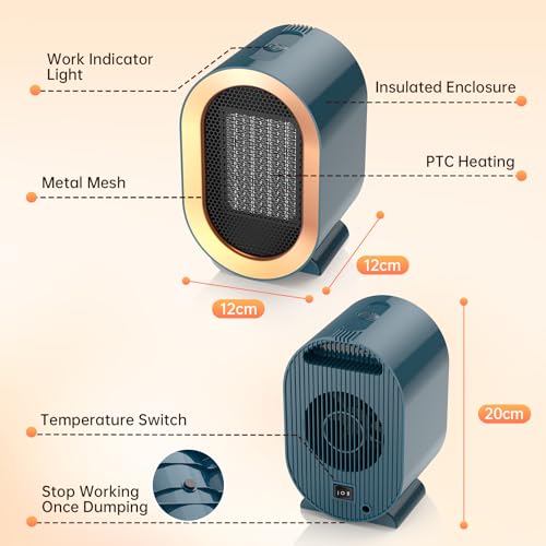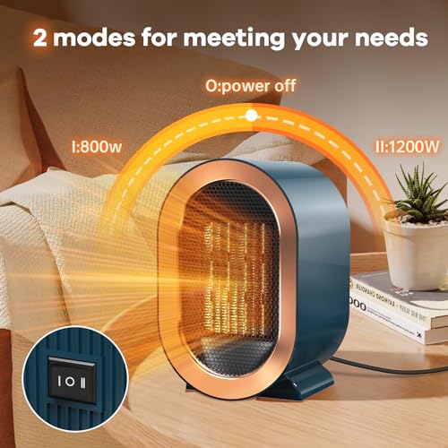 Tiptop Home - مدفاة كهربائية كهربائية محمولة بوضعين بقدرة 1200 وات من تيبتوب، مصنوعة من سيراميك بي تي سي 3 ثوان تسخين سريع وهادئ، تسخين شخصي للمكتب، أزرق