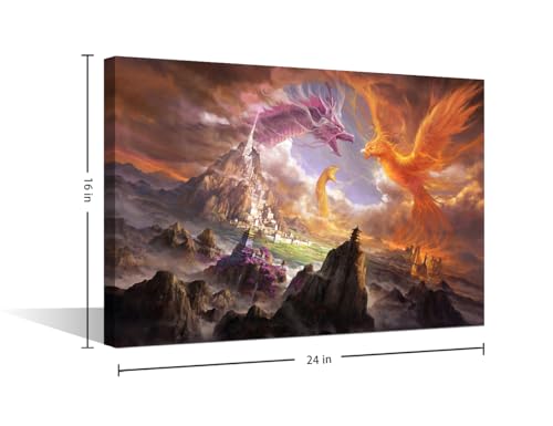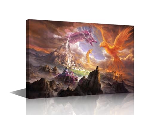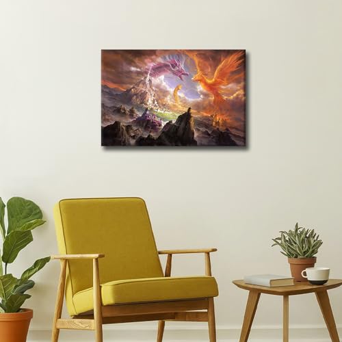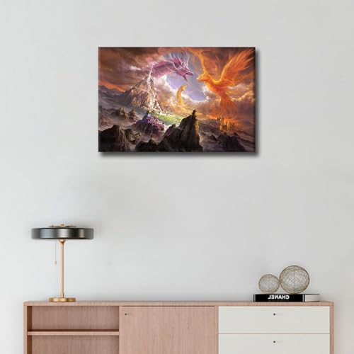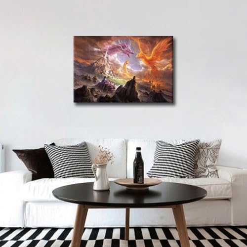 TISHIRON - لوحة فنية جدارية بتصميم تنين يزأر لغرفة الأطفال والحمام، ملصقات ومطبوعات تنين خيالية كبيرة الحجم من القماش بإطار لديكور المنزل وغرفة النوم والمكتب وغرفة المعيشة، مؤطرة مقاس 60 × 40 سم من تيشيرون