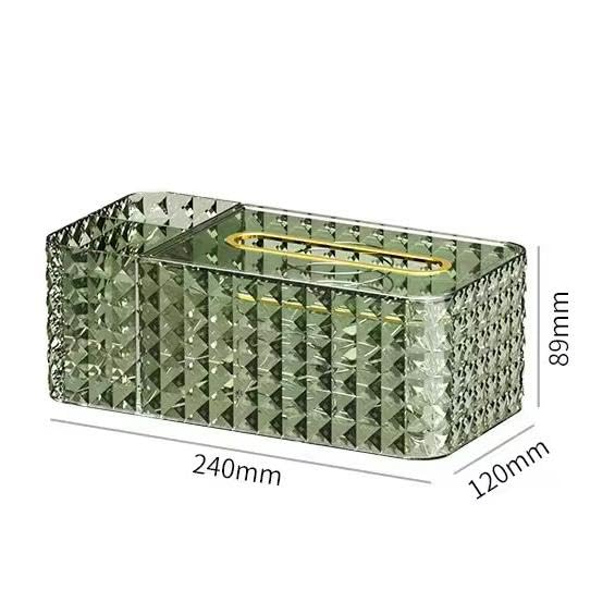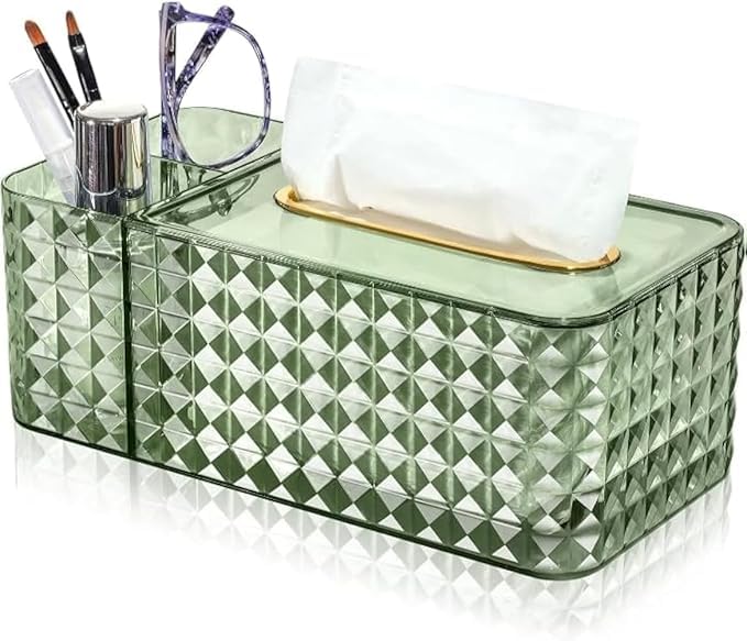 Generic - Tissue Box Acrylic Organizer With Zipper – Clear Makeup Storage Box With Accessory Slot – Dustproof Vanity Tissue Holder For Desk Bathroom Bedroom (Green)