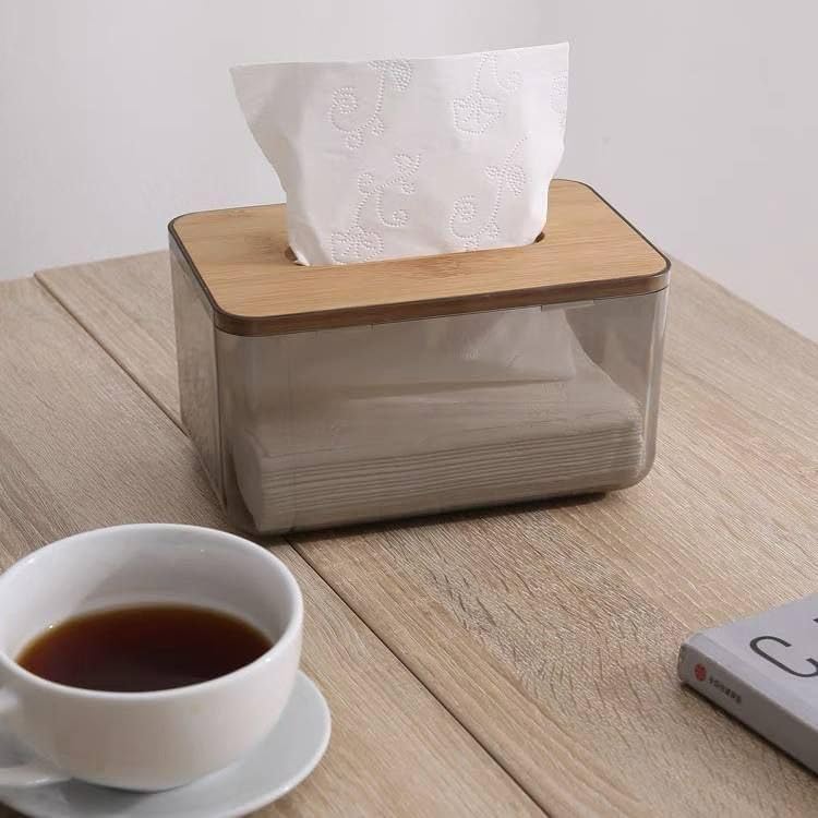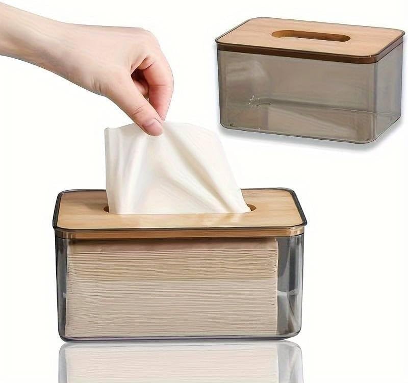 Generic - Tissue Box Acrylic With Wooden Lid Break-Resistant Decorative Tissue Holder For Living Room Bathroom Office Modern Napkin Organizer Home Accessories