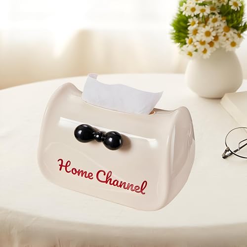 Generic - غطاء علبة مناديل - حاوية مزخرفة انيقة على شكل فيونكة للمناديل وورق المرحاض، مثالية لغرفة النوم وتنظيم المكتب (ابيض)