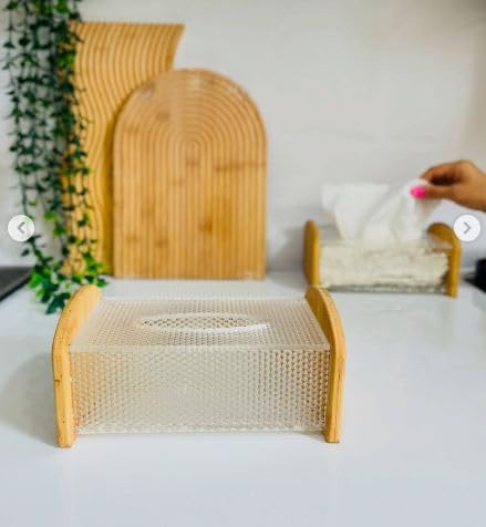 - 【Acrylic Tissue Box Holder】The tissue dispenser is comprised of a bamboo cover lid and a transparent container made of premium quality PET material. it won’t easily crack or splinter to provide long-lasting durability and reliable use. 【Transparent Container】The transparent container body makes it easy to monitor the amount of tissue left in the tissue holder,Convenient tissue replenishment. 【Suitable for all home styles】This minimalist design tissue box with bamboo lid adds a natural, modern addition to any interior setting. Perfect for nightstands, countertops and bathroom vanity , Bedroom, Bathroom, Living Room, Kitchen & Office.