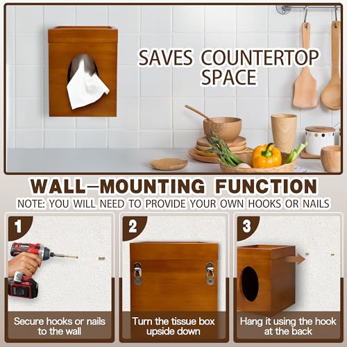 - Wall-Mountable and Easy to Maintain: This versatile wood tissue box cover features a wall-mountable design that easily hangs in the bathroom, kitchen, or entryway, saving countertop space and providing convenient access to tissues. You will need to provide your own hooks or nails. This durable and easy-care tissue box covers requires only a gentle wipe to maintain its beauty, making it a thoughtful gift for a housewarming, wedding, or holiday.