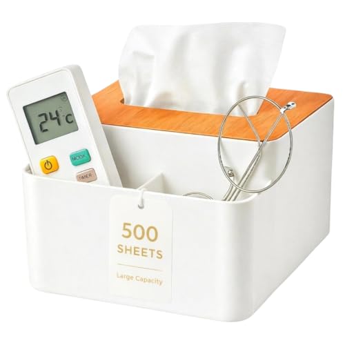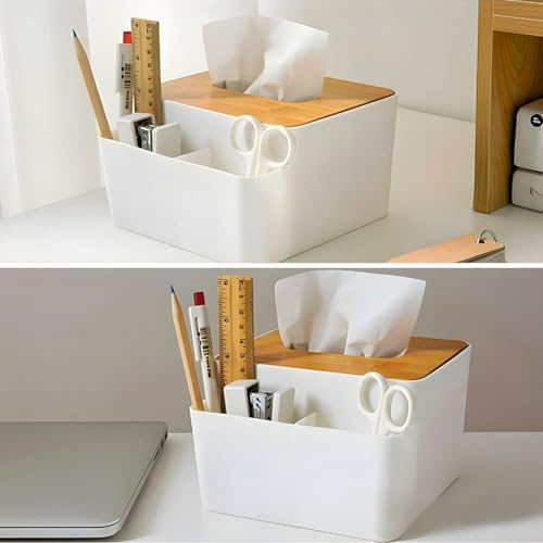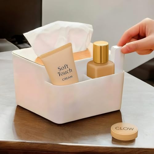 - Organized Storage Solution - More than a simple tissue dispenser, this multifunctional tissue box includes compartments for remotes, cosmetics, and small essentials, keeping your desk, countertop, or makeup area clutter-free.
