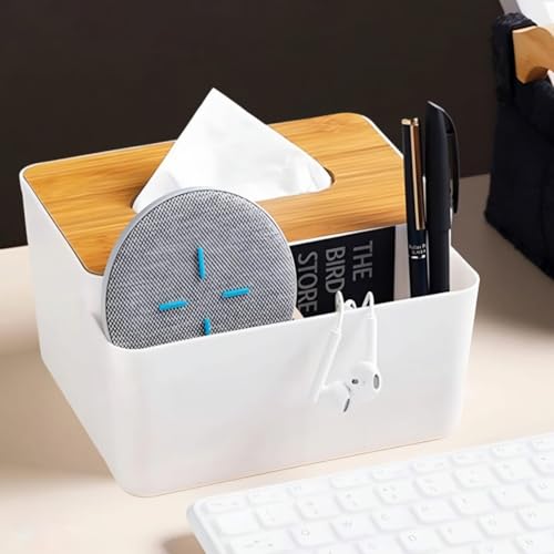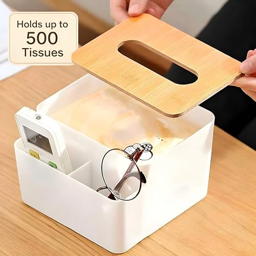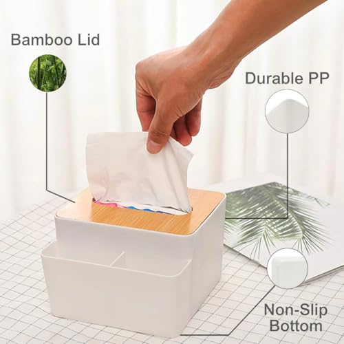 - Elegant & Durable Design - Crafted from sturdy plastic with a smooth finish and a natural bamboo lid tissue box, this rectangular tissue holder offers durability and a decorative touch suitable for vanity, nightstand, or living room.