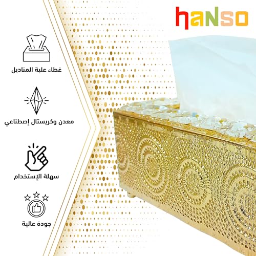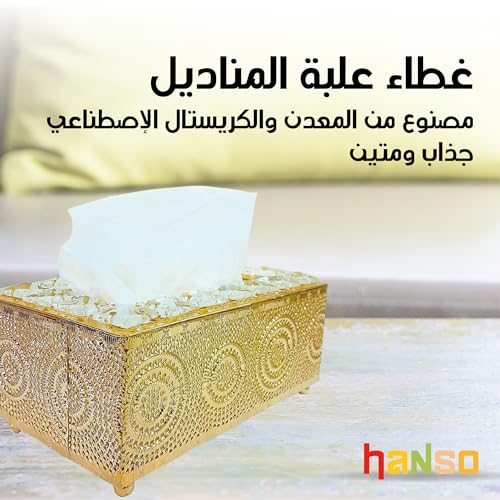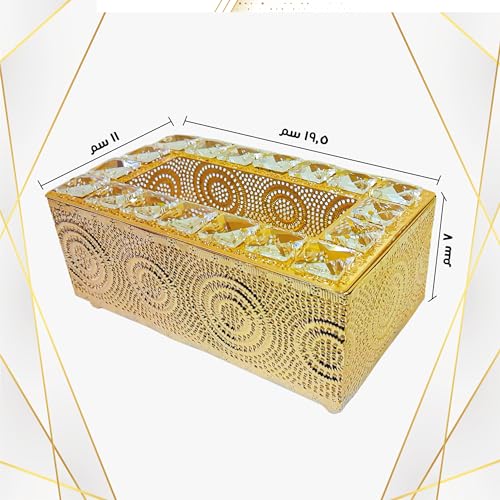 - كريستالات لامعة: الصندوق مزين بكريستالات لامعة تلتقط الضوء وتعكسه، مما يخلق تأثيرًا مبهرًا. يضيف لمسةً من السحر إلى منزلك مع الحفاظ على المناديل في متناول اليد.